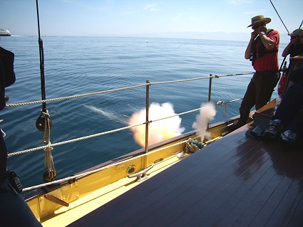Special Events: Every year there are special events happening in Victoria and we believe in getting in on the excitement. Clipper Around the World Yacht Race, Swiftsure Annual Race, Tall Ships Challenge and the Classic Boat festival are among some of the fun filled times in the harbour. There are the fireworks on Canada Day July 1 st and the Symphony Splash! We also offer tours to visit the US Navy's largest air craft carriers: US Abraham Lincoln and US John C. Stennis. We go out to witness the Canadian Air Force Snowbirds incredible air show. We are proud to fire our cannon in salute at all of these events which we have participated in continuously over the years . Check out the Calendar of Events and see what is happening when you're in town!