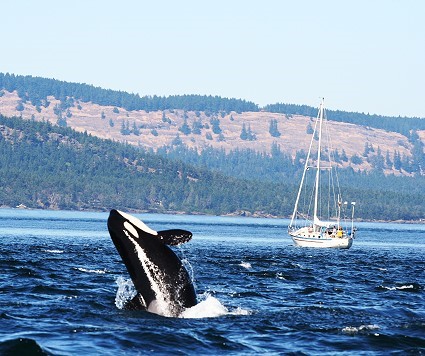 There is no better way to see the Southern Resident killer whales than while sailing aboard the Tall Ship THANE. Although we do see them often, the likelihood of seeing the killer whales aboard THANE is less than it is aboard a whale watching vessel.